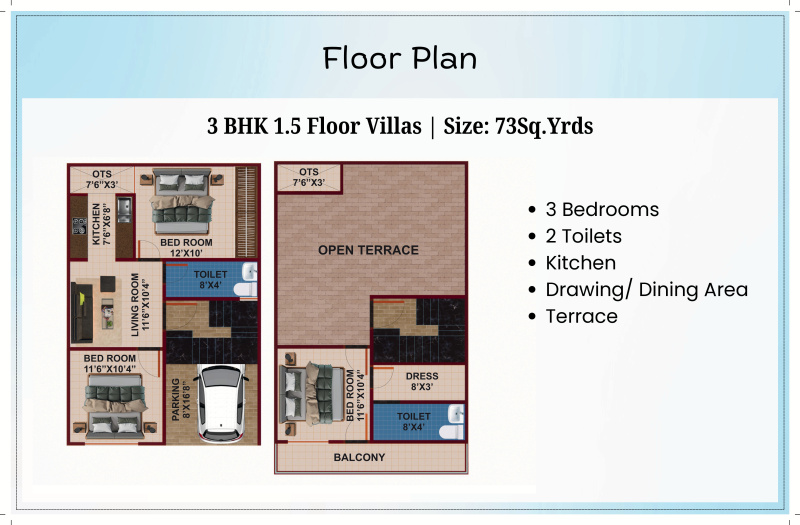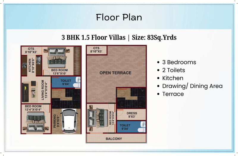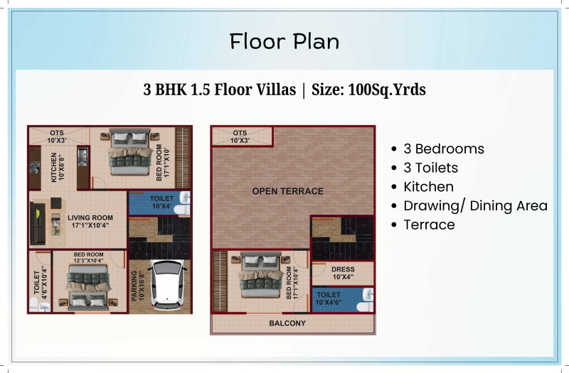 • Elegant 3 BHK Villas with 3 toilets — ideal for modern family living.